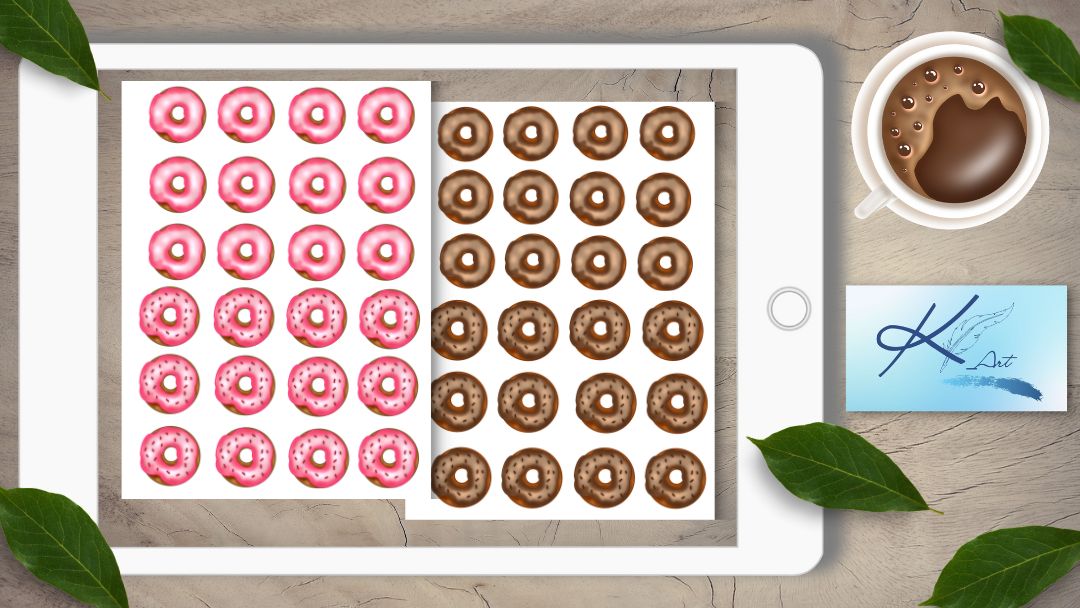 Verschiedene Glasuren: Die digitalen Donut Sticker wurden mit unterschiedlichen Glasuren gestaltet – von zartem Rosa über leckeres Schokoladenbraun bis hin zu vanilligem Gelb. Du kannst den perfekten Donut auswählen, der Deine Stimmung am besten widerspiegelt.