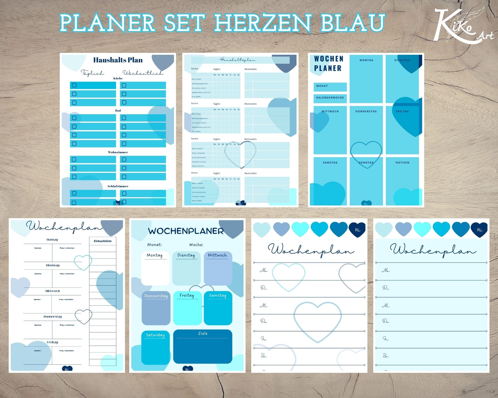 Digitales Planer Set „Herzen Blau“ – Liebevolle Gestaltung für Deine perfekte Organisation!