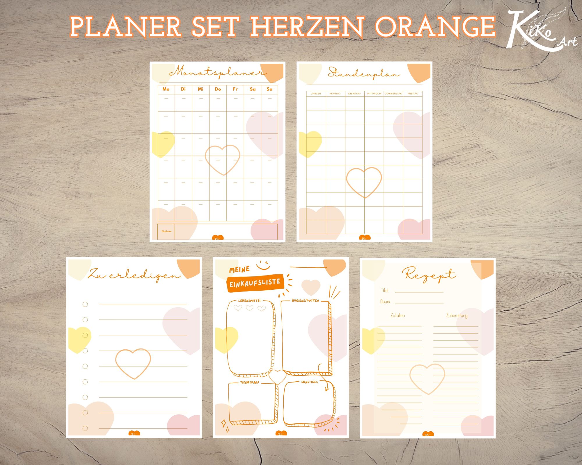 Digitales Planer Set „Herzen Orange“ – Liebevolle Gestaltung für Deine perfekte Organisation!