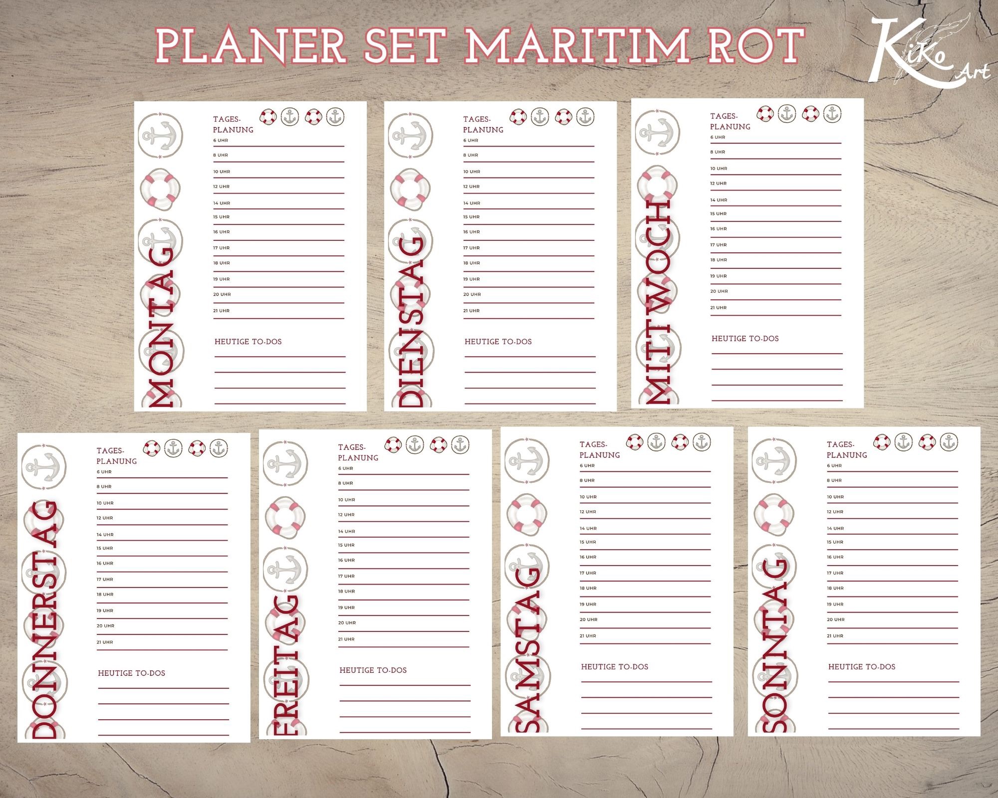 Meine digitalen Planer Seiten im roten maritimen Stil sind der Schlüssel, um die Schönheit des Ozeans direkt in Deinen Planer, Kalender und Bullet Journal zu bringen.
